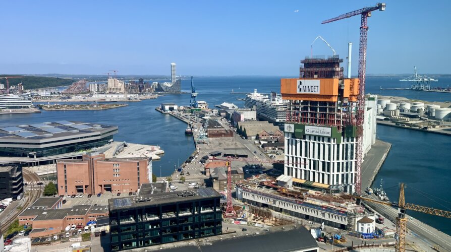 Sådan lød det fra adm. direktør for Olav de Linde, Esben Kjeldsen, der lige nu er ved at opføre Aarhus’ højeste kontorbygning, Mindet. Med sine 144 meter bliver ejendommen højere end den nuværende rekordholder, Lighthouse.