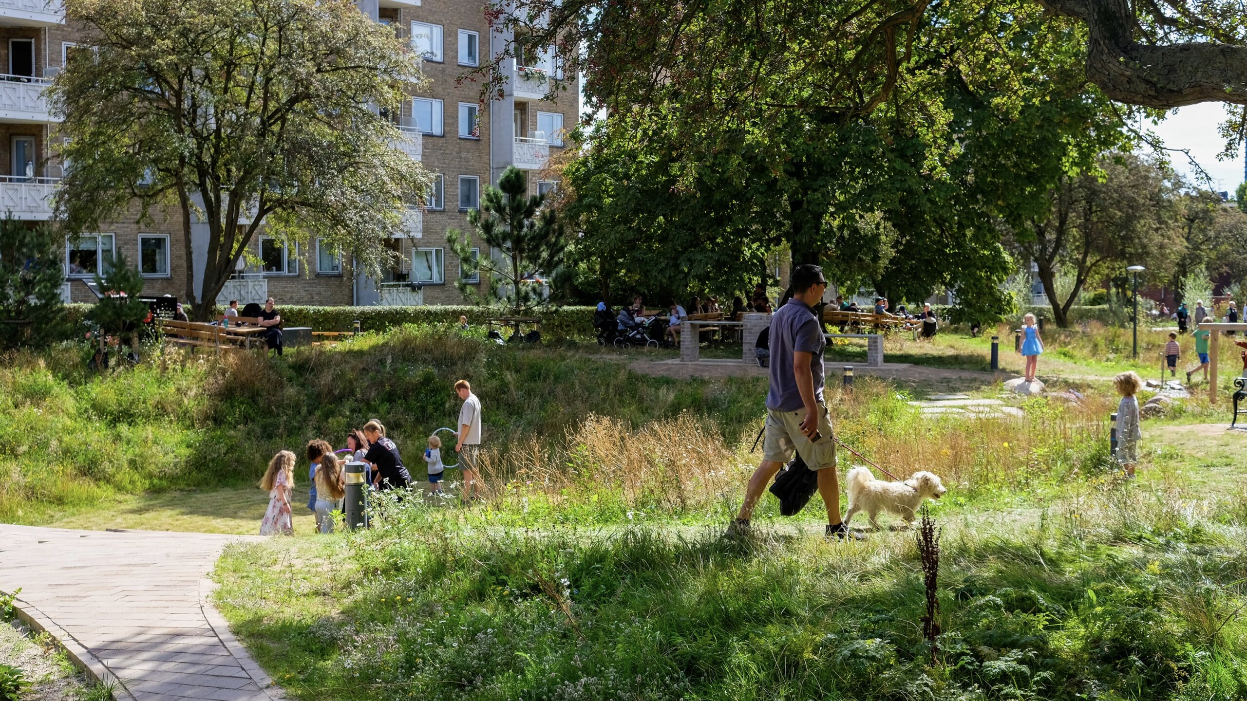 Med sociale regnvandsbassiner og naturbaserede løsninger kan området håndtere op mod 3.000 kubikmeter regnvand og dermed beskytte nærliggende boliger og institutioner mod oversvømmelser.